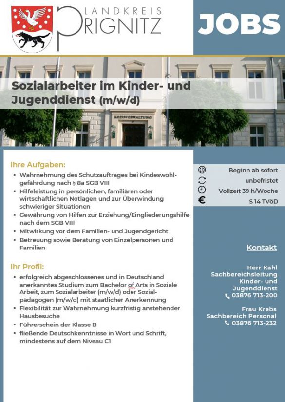 Sozialarbeiter im Kinder- und Jugenddienst (m/w/d)