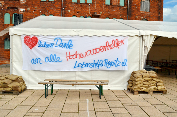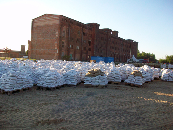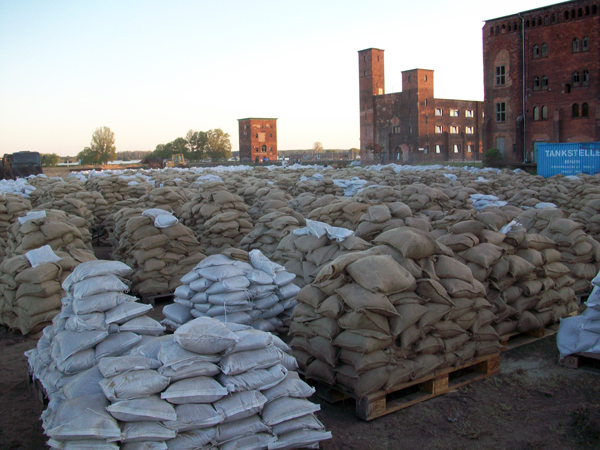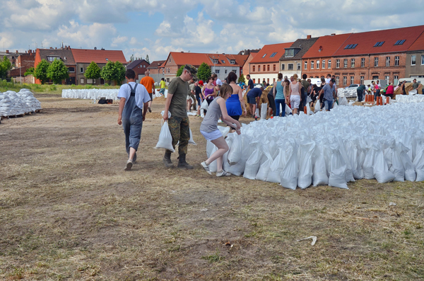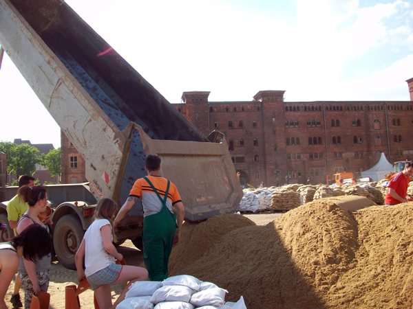 Sandsackfüllplatz am Packhofviertel (10.06.2013)