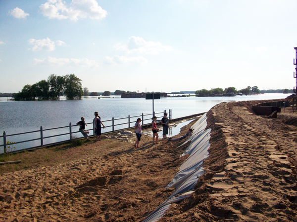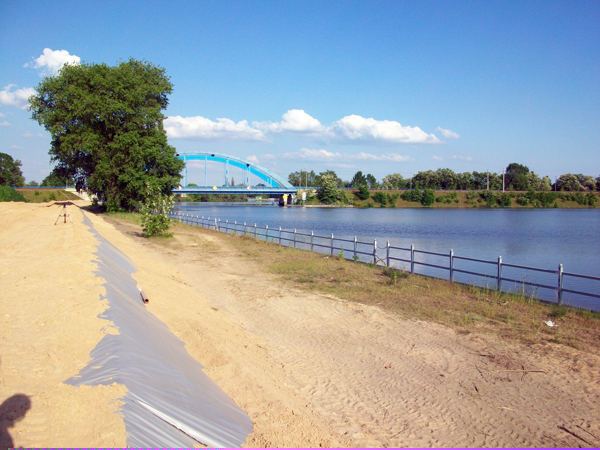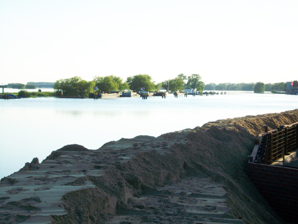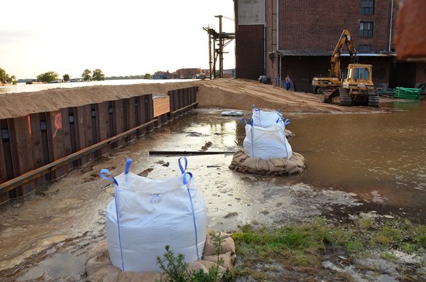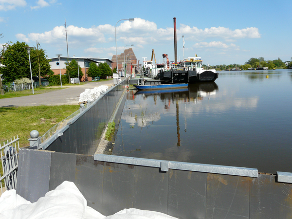 Spundwand und Sandsackbarriere am Wittenberger Hafen (10.06.2013)