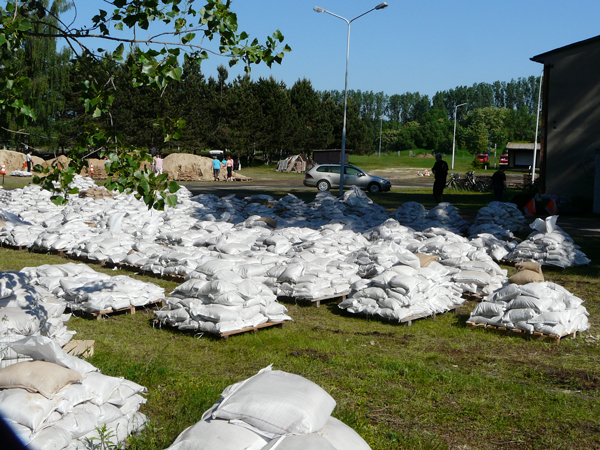 Gefüllte Sandsäcke am Abend des 07.06.2013