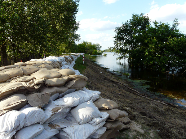 Sandsackstapel an der Ölmühle (07.06.2013)